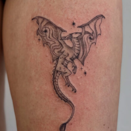 Hledáte tetování, které kombinuje sílu a majestátnost? Výborně! Drak je v mnoha kulturách považován za mocného a mystického tvora. V čínské kultuře je symbolem síly, ochrany a štěstí. Čínský drak je navíc často vyobrazen s ocasem v plamenech, se šupinami a charakteristickým prohnutým tělem, které spíše připomíná tvar hada. Vyniká tak svou odvahou, schopností překonávat překážky a upozorňuje na mocný vliv přírody.