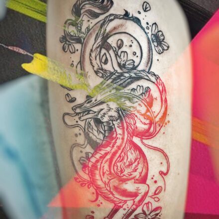 Hledáte tetování, které kombinuje sílu a majestátnost? Výborně! Drak je v mnoha kulturách považován za mocného a mystického tvora. V čínské kultuře je symbolem síly, ochrany a štěstí. Čínský drak je navíc často vyobrazen s ocasem v plamenech, se šupinami a charakteristickým prohnutým tělem, které spíše připomíná tvar hada. Vyniká tak svou odvahou, schopností překonávat překážky a upozorňuje na mocný vliv přírody.