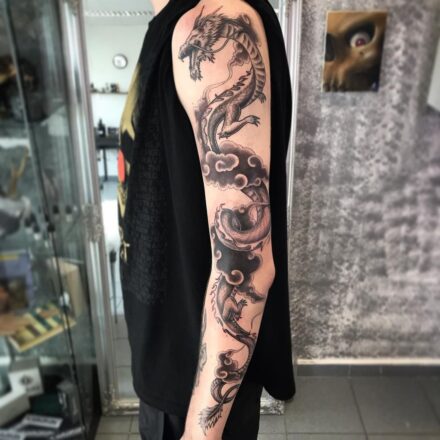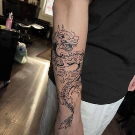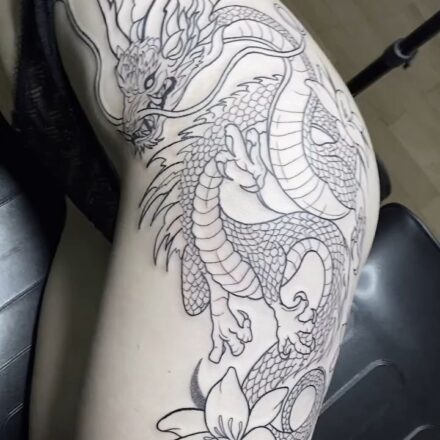 Hledáte tetování, které kombinuje sílu a majestátnost? Výborně! Drak je v mnoha kulturách považován za mocného a mystického tvora. V čínské kultuře je symbolem síly, ochrany a štěstí. Čínský drak je navíc často vyobrazen s ocasem v plamenech, se šupinami a charakteristickým prohnutým tělem, které spíše připomíná tvar hada. Vyniká tak svou odvahou, schopností překonávat překážky a upozorňuje na mocný vliv přírody.