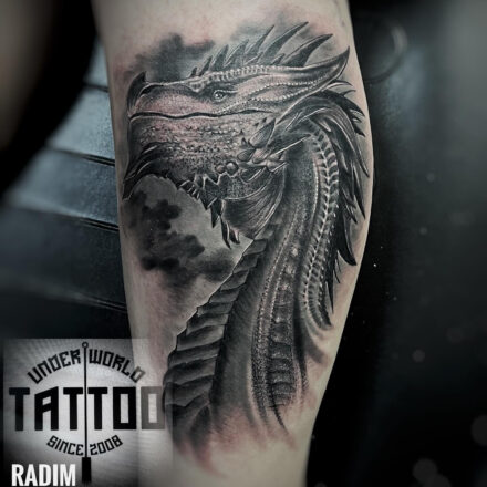 Hledáte tetování, které kombinuje sílu a majestátnost? Výborně! Drak je v mnoha kulturách považován za mocného a mystického tvora. V čínské kultuře je symbolem síly, ochrany a štěstí. Čínský drak je navíc často vyobrazen s ocasem v plamenech, se šupinami a charakteristickým prohnutým tělem, které spíše připomíná tvar hada. Vyniká tak svou odvahou, schopností překonávat překážky a upozorňuje na mocný vliv přírody.