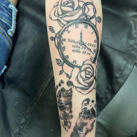Tetování hodin a růže: Spojení času a krásy
