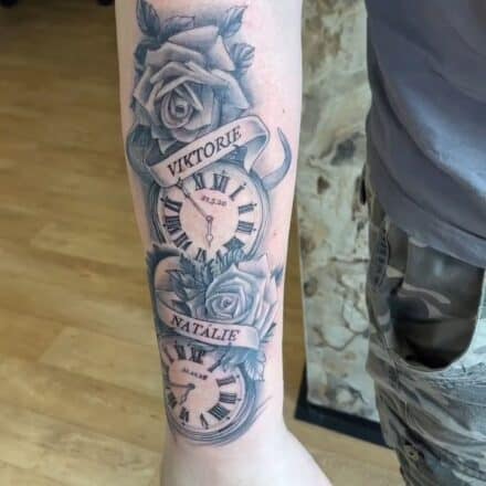 Tetování hodin a růže: Spojení času a krásy
