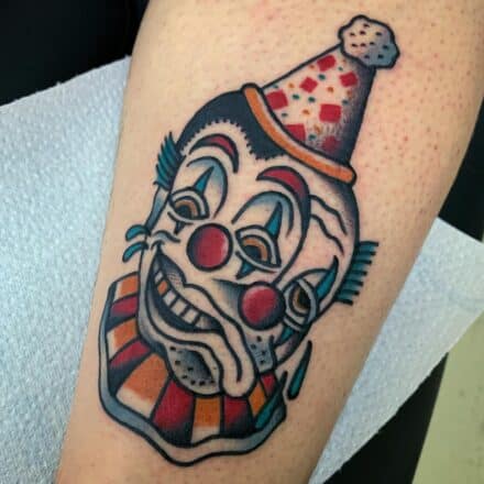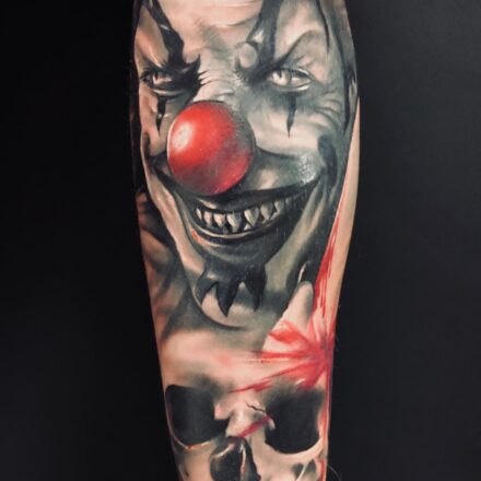 Klaun je postava plná rozporů. Jeho smích může být veselý i děsivý, ale i upřímný nebo falešný. V cirkuse baví davy, ale co se skrývá za jeho maskou? Tetování klauna odráží radost i temnotu. Veselý klaun symbolizuje optimismus, hravost a schopnost smát se i v těžkých chvílích. Bývá barevný s typickým širokým úsměvem. Děsivý klaun naopak působí hrozivě a tajemně, často je černobílý s démonickým výrazem a temnými stíny.