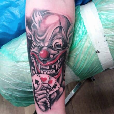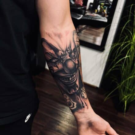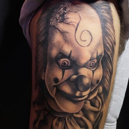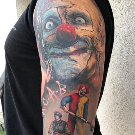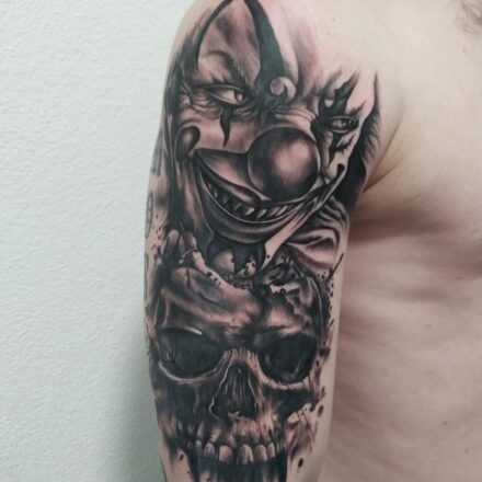 Klaun je postava plná rozporů. Jeho smích může být veselý i děsivý, ale i upřímný nebo falešný. V cirkuse baví davy, ale co se skrývá za jeho maskou? Tetování klauna odráží radost i temnotu. Veselý klaun symbolizuje optimismus, hravost a schopnost smát se i v těžkých chvílích. Bývá barevný s typickým širokým úsměvem. Děsivý klaun naopak působí hrozivě a tajemně, často je černobílý s démonickým výrazem a temnými stíny.
