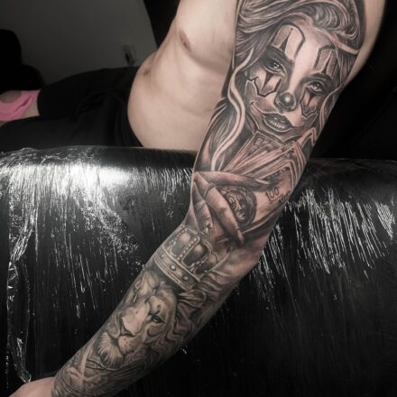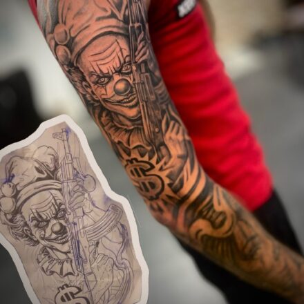 Klaun je postava plná rozporů. Jeho smích může být veselý i děsivý, ale i upřímný nebo falešný. V cirkuse baví davy, ale co se skrývá za jeho maskou? Tetování klauna odráží radost i temnotu. Veselý klaun symbolizuje optimismus, hravost a schopnost smát se i v těžkých chvílích. Bývá barevný s typickým širokým úsměvem. Děsivý klaun naopak působí hrozivě a tajemně, často je černobílý s démonickým výrazem a temnými stíny.