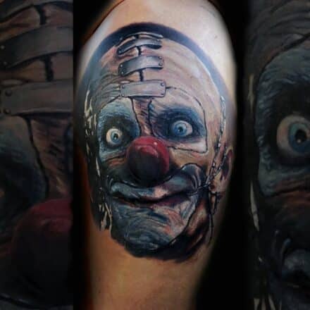 Klauni pocházejí z cirkusů a divadel, kde od 18. století bavili publikum svou improvizací a komedií. Tetování veselého klauna symbolizuje schopnost brát život s nadhledem, smát se navzdory problémům a šířit radost. Děsivý klaun se díky popkultuře stal symbolem strachu, zejména kvůli filmům jako To od Stephena Kinga. Tetování děsivého klauna s pronikavým pohledem a nepřirozeným úsměvem vyjadřuje skrytou hrozbu nebo vnitřní temnotu. Tetování děsivého klauna si nechávají tetovat lidé, kteří chtějí ukázat, že nic není takové, jak se na první pohled zdá.