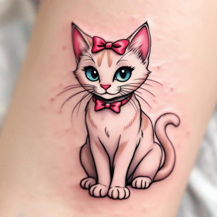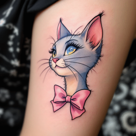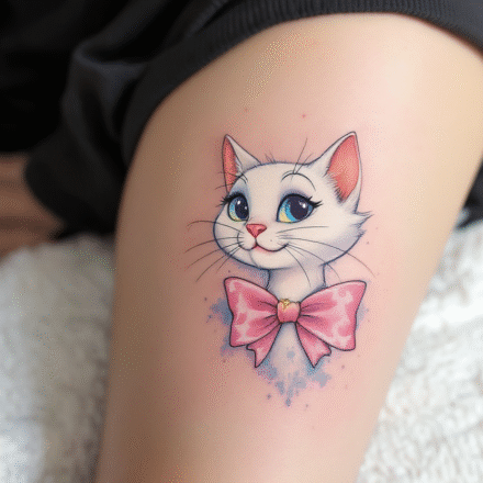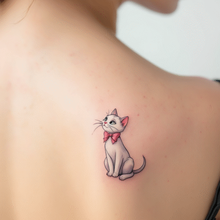 Kočka Marie pochází z pohádky Aristokočky, kde ztvárnila kočičí princeznu a stala se tak symbolem elegance. Marie je totiž okouzlující kotě, které ví, co chce. Chová se jako malá dáma, ale nezapře svou nezávislou povahu. Tetování kočky Marie tak vyjadřuje hravou kombinaci něhy a odhodlání, smysl pro krásu i chuť jít po svém.