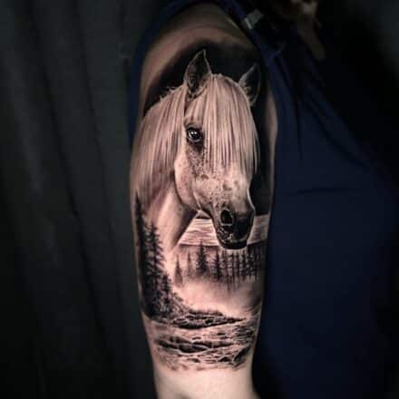 Prozkoumejte naši galerii tetování koně a nechte se inspirovat motivy, které zachycují sílu, volnost a jedinečnost tohoto vznešeného zvířete. Pomocí něj můžete vyjádřit svou lásku k přírodě, odvahu a spojení s vlastní nezkrotnou energií.