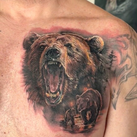 Medvěd tetování: síla divočiny, ochránce i hravost