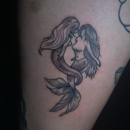 Tetování mořských panen přináší nádech tajemství spojeného s mořem. Už v 18. století si je námořníci nechávali tetovat, protože věřili že jim zajistí bezpečný návrat domů. Dnes tento motiv zůstává stále populární. Oblíbené je klasické provedení mořské panny sedící na skále s vlasy splývajícími do vln i detailní portrét mořské panny, zachycující její éterickou krásu a mystiku. Tetování bývá často doplněno mušlemi, hvězdicemi, kotvami nebo tetováním vln, které ještě více podtrhují námořní tématiku.