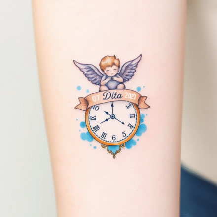 Tetování hodin spojené s narozením dítěte je symbolem vzniku nového života a připomínkou momentu, kdy dítě přišlo na svět. Čas narození je pro rodiče údaj, který si chtějí uchovat nejen v paměti, ale i na své kůži. Hodiny v tetování zdůrazňují přesný moment narození, často doplněný o jméno dítěte či datum narození. Tetování tak zachycuje každou vteřinu, která se v tu chvíli zdála nekonečná, ale zároveň utíkala neuvěřitelnou rychlostí.