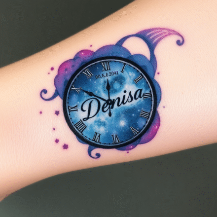 Tetování narození dítěte a hodin: Otisk nejdůležitějšího okamžiku