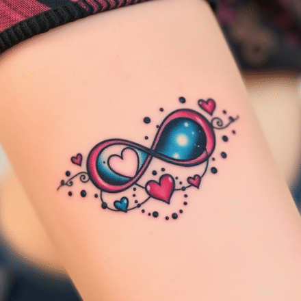 Tetování nekonečna a srdce patří mezi nejromantičtější motivy ve světě tetování, a to díky svému symbolu věčné lásky a nekonečného pouta. Kombinace ležaté osmičky se srdcem vytváří motiv nekonečných citů a nerozlučného vztahu. Navíc často reprezentuje lásku, která překonává čas a prostor.