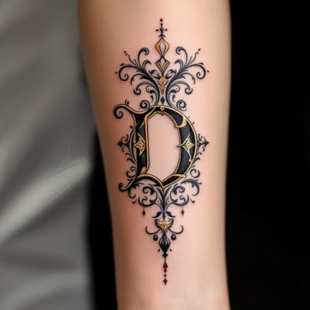 Písmeno D nabízí zajímavé možnosti pro umělce. Může symbolizovat anglická slova jako „Dream“ (sen), „Destiny“ (osud) nebo „Determination“ (odhodlání). V římských číslicích představuje číslo 500. Graficky se dá zpracovat mnoha způsoby – od elegantní kurzívy přes gotické písmo až po moderní minimalistické provedení. Lidé často kombinují tetování písmen s růžemi, křídly nebo geometrické vzory, které dokreslují celkový význam tetování.