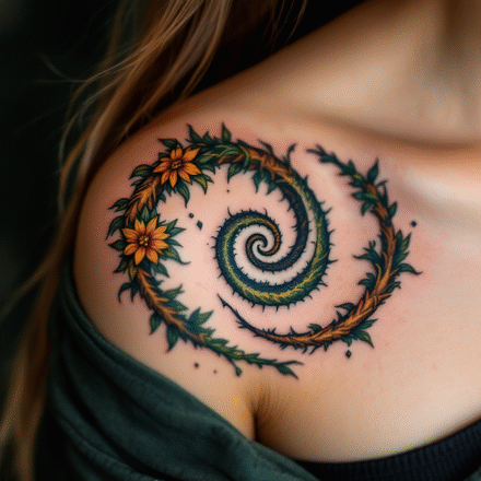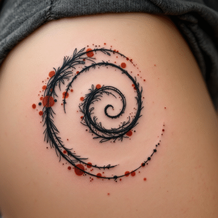 Spirála je motiv, který dýchá pohybem. Může být stroze geometrická, proměnit se v keltský triskelion, dvojšroubovici DNA nebo se dokáže rozvinout v celou galaxii. Skvěle jí sedí přírodní doprovod – květiny, vlny i tribal motivy. Pokud tíhnete k minimalismu, sáhněte po tenkých čarách a čisté kresbě. Toužíte po výraznějším dojmu? Hrajte si se stínováním, barevnými přechody a ornamenty.