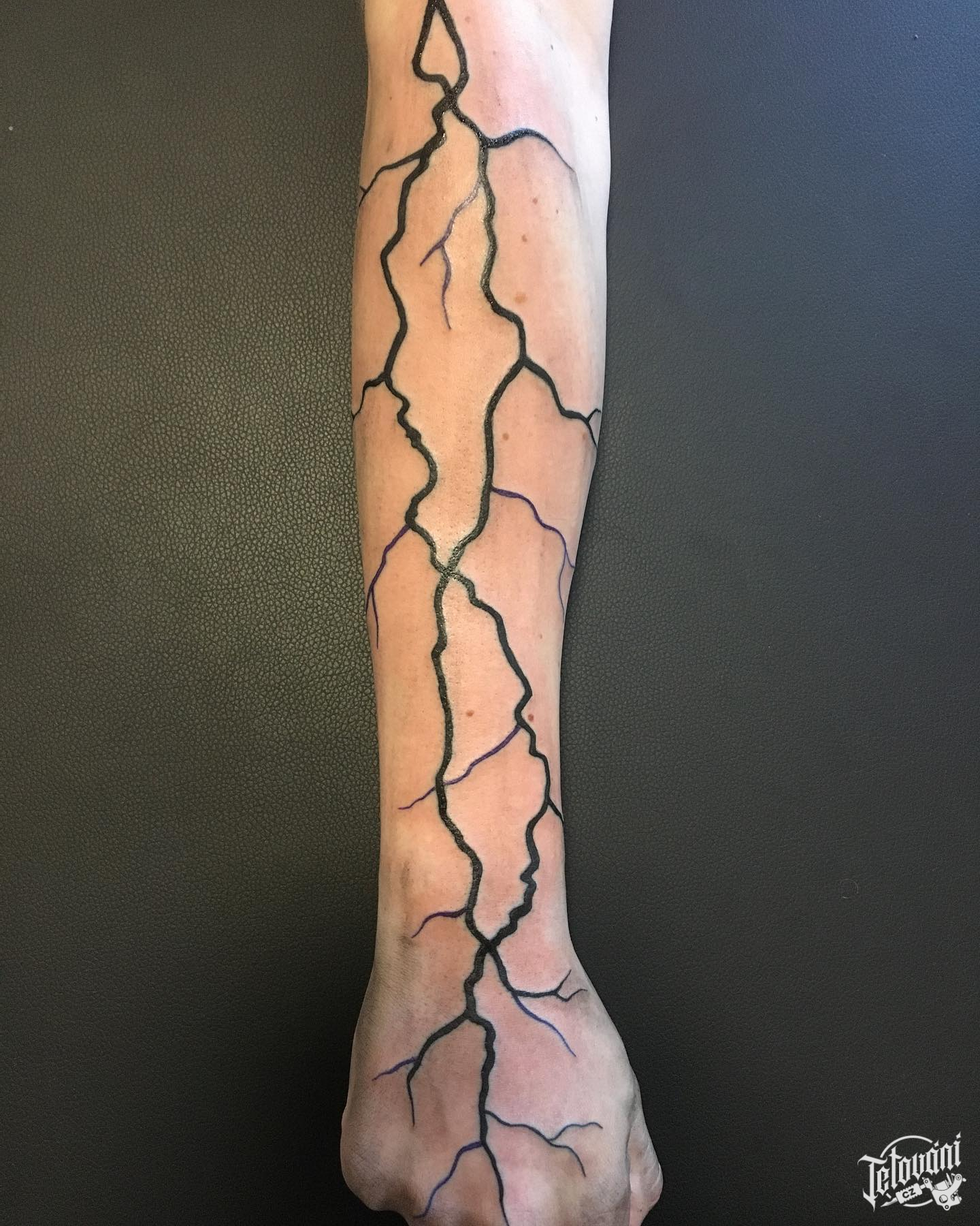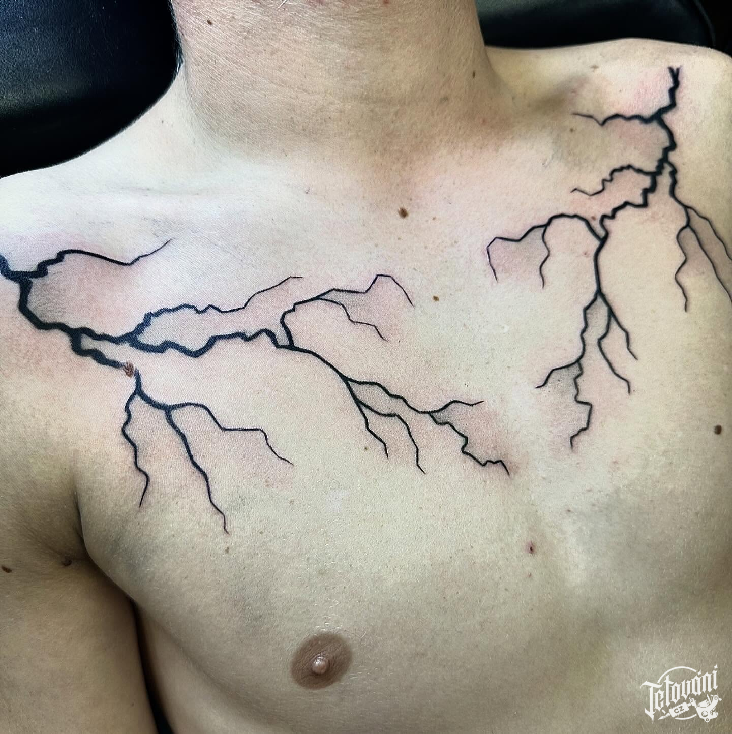- Realistické tetování: Detailní a živé ztvárnění blesku, které přináší dojem pohybu a energie.