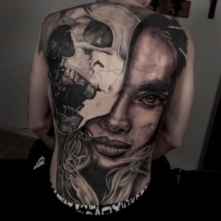 Tetování lebky a hodin je připomínkou neúprosného plynutí času a nevyhnutelnosti konce. Hodiny symbolizují, jak rychle nám čas protéká mezi prsty, zatímco lebka nám připomíná, že život má své hranice. Tato kombinace je oblíbená mezi těmi, kteří chtějí zdůraznit důležitost každého okamžiku a rozhodli se žít svůj život naplno.