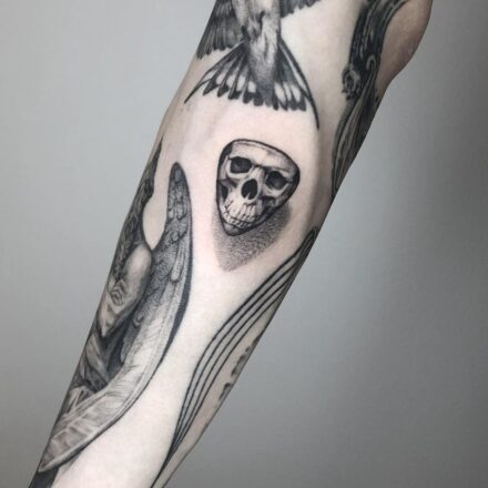 Tetování lebky a hodin je připomínkou neúprosného plynutí času a nevyhnutelnosti konce. Hodiny symbolizují, jak rychle nám čas protéká mezi prsty, zatímco lebka nám připomíná, že život má své hranice. Tato kombinace je oblíbená mezi těmi, kteří chtějí zdůraznit důležitost každého okamžiku a rozhodli se žít svůj život naplno.