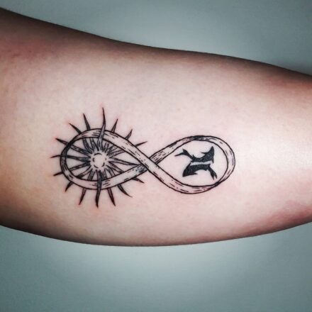 Symbol nekonečna, známý jako ležatá osmička (∞), je jedním z ikonických motivů ve světě tetování. Původní znak použil poprvé matematik John Wallis v 17. století. Poté se motiv postupně stal symbolem věčnosti a nekonečných možností. V mnoha kulturách navíc symbolizuje nekonečno spojení protikladů, jako je například mužský a ženský princip.