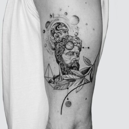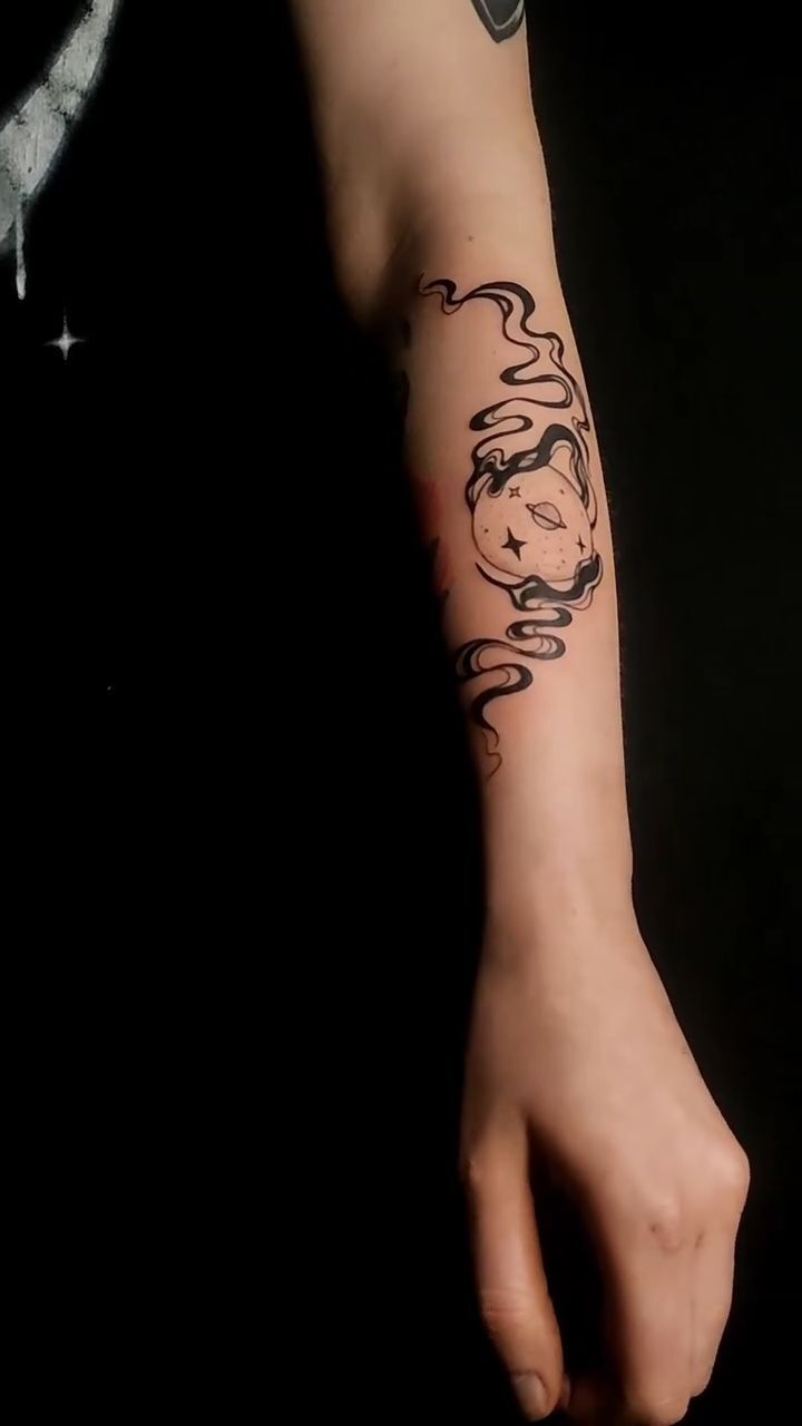 Vesmírné tetování není jen o hvězdách. Jedním z nejčastějších motivů je Měsíc, který v sobě nese tajemství noci, proměnlivost a cykly života. Fáze Měsíce si lidé nechávají tetovat jako symbol neustálé proměny, růstu a vnitřního vývoje – připomínku, že nic netrvá navždy, ale všechno má svůj čas.