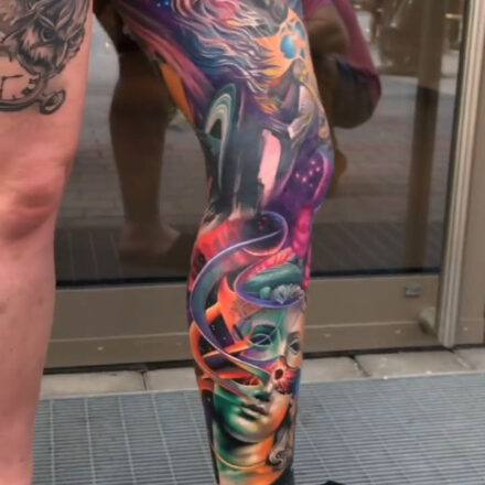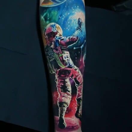Vesmír fascinuje lidi svou nekonečností, tajemstvím a krásou, která přesahuje lidské chápání. Tetování s vesmírnou tematikou zobrazuje planety, hvězdy, a to i v podobě Slunce, galaxie nebo souhvězdí a stává se tak symbolem naprosté svobody, snění a víry v nekonečné možnosti.