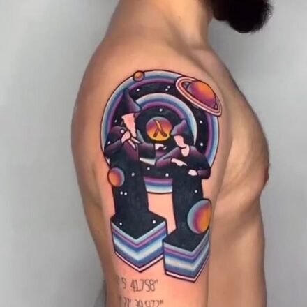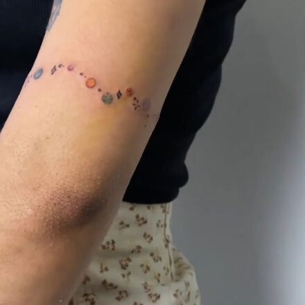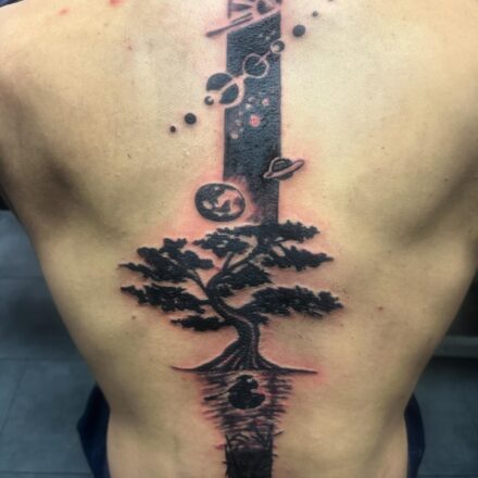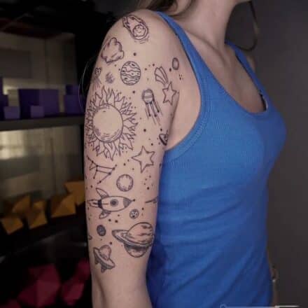 Vesmír fascinuje lidi svou nekonečností, tajemstvím a krásou, která přesahuje lidské chápání. Tetování s vesmírnou tematikou zobrazuje planety, hvězdy, a to i v podobě Slunce, galaxie nebo souhvězdí a stává se tak symbolem naprosté svobody, snění a víry v nekonečné možnosti.