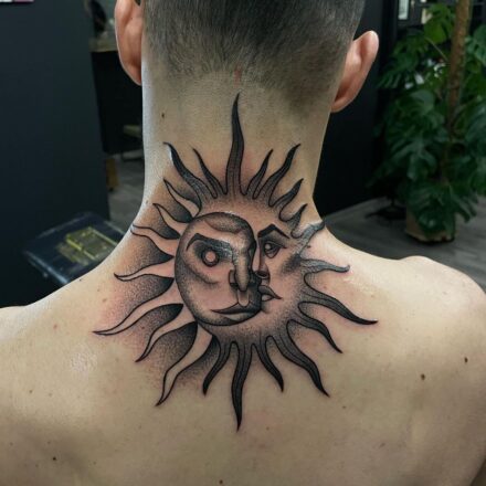 Vesmírné tetování není jen o hvězdách. Jedním z nejčastějších motivů je Měsíc, který v sobě nese tajemství noci, proměnlivost a cykly života. Fáze Měsíce si lidé nechávají tetovat jako symbol neustálé proměny, růstu a vnitřního vývoje – připomínku, že nic netrvá navždy, ale všechno má svůj čas.