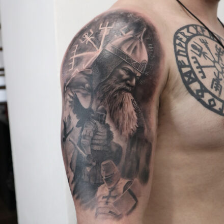 Historická hloubka, mystika a síla – to je vikingské tetování. Vikingské symboly sahají až do severské mytologie, kde v dávných dobách charakteristické runy znázorňovaly magickou a ochrannou moc. Tyto runy byly používány k vyjádření síly, moudrosti a ochrany. I dnes jsou díky tomu oblíbeným motivem pro ty, kteří chtějí vyjádřit své propojení s vikingskou kulturou.