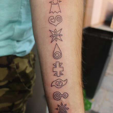 Tetování nemusí být jen obrázek, který každý hned pochopí. Znaky a symboly mají sílu skrýt osobní vzkaz, který zná jen ten, kdo ho nosí. Mezi nejoblíbenější patří runa Algiz, která vypadá jako písmeno „Y“ a ochraňuje nositele před negativními silami. Triskelion, starý symbol se třemi zakřivenými rameny, představuje rovnováhu mezi tělem, myslí a duší. Pentagram je pěticípá hvězda v kruhu. Někteří věří, že přináší harmonii, jiní ji vnímají jako ochranu před temnotou. Kanji znak pro „sílu“ (力) symbolizuje odolnost a pevnou vůli.