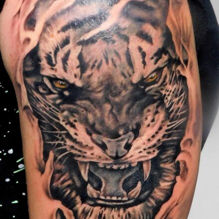 Tygři jsou majestátní a silní tvorové, kteří symbolizují odvahu, sílu a nezávislost. V naší galerii tetování najdete širokou škálu motivů, které zachycují krásu těchto zvířat. Ať už hledáte realistické tetování tygra s precizními prvky, nebo stylizované abstraktní motivy, naše kolekce tetování tygra nabízí inspiraci pro každého, kdo chce mít na své kůži kousek divočiny.