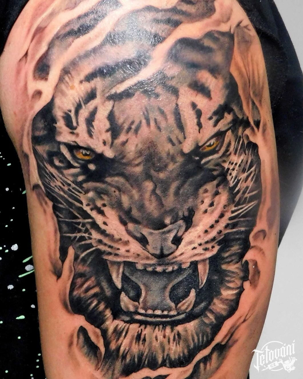 Tygři jsou majestátní a silní tvorové, kteří symbolizují odvahu, sílu a nezávislost. V naší galerii tetování najdete širokou škálu motivů, které zachycují krásu těchto zvířat. Ať už hledáte realistické tetování tygra s precizními prvky, nebo stylizované abstraktní motivy, naše kolekce tetování tygra nabízí inspiraci pro každého, kdo chce mít na své kůži kousek divočiny.