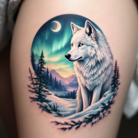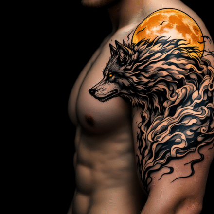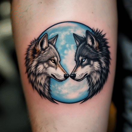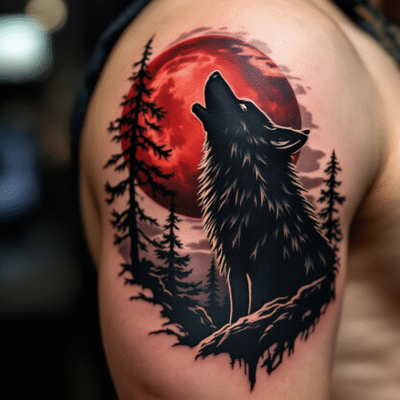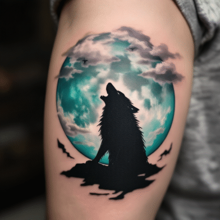 Vlci jsou noční tvorové. Jejich vytí za úplňku je způsob, jak komunikují, jak si drží kontakt se smečkou, ale i s okolním světem. Tetování vlka, který vyje nebo hledí k měsíci často představuje touhu a volání po svobodě. Měsíc navíc symbolizuje ženský princip, jejich cykličnost, sny, ale i potřebu změny. Společně vytváří obraz rovnováhy mezi vnitřní a vnější silou.