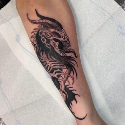 Ve světě Harryho Pottera bylo znamení zla znakem Smrtijedů, oddaných následovníků lorda Voldemorta. Tento děsivý symbol v podobě lebky s hadem označoval místa jejich útoků a zároveň sloužil jako magické znamení pro jejich svolávání. Smrtijedi si ho nenosili jen jako pouhý symbol, bylo jim magicky vypáleno na levé předloktí jako trvalý důkaz věrnosti temnému pánovi. Pro některé je tetování smrtijeda pocta ikonickému světu Harryho Pottera, pro jiné výpověď o vnitřním boji a temnotě, kterou v sobě člověk nese.