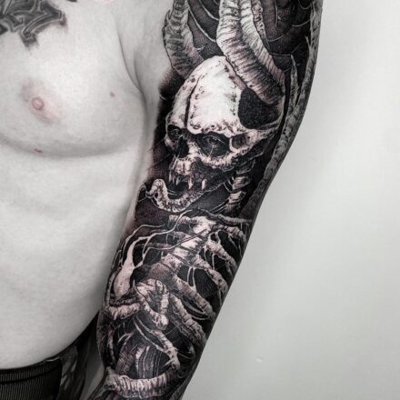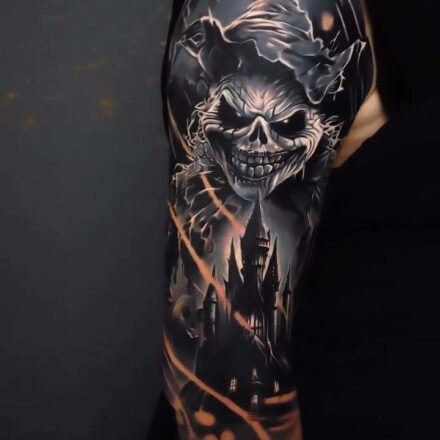 Ve světě Harryho Pottera bylo znamení zla znakem Smrtijedů, oddaných následovníků lorda Voldemorta. Tento děsivý symbol v podobě lebky s hadem označoval místa jejich útoků a zároveň sloužil jako magické znamení pro jejich svolávání. Smrtijedi si ho nenosili jen jako pouhý symbol, bylo jim magicky vypáleno na levé předloktí jako trvalý důkaz věrnosti temnému pánovi. Pro některé je tetování smrtijeda pocta ikonickému světu Harryho Pottera, pro jiné výpověď o vnitřním boji a temnotě, kterou v sobě člověk nese.