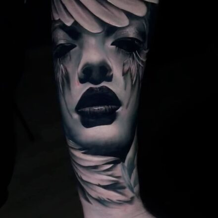 Black and grey tetování vynikne na jakékoliv části těla. Často se jedná o tetování na předloktí, záda, hrudník nebo tetování na nohy, kde může být plně využit potenciál detailního stínování a realistických obrazů.