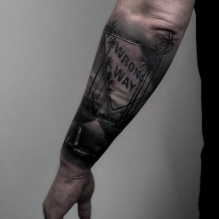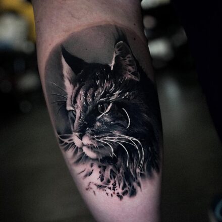 Black and grey tetování vynikne na jakékoliv části těla. Často se jedná o tetování na předloktí, záda, hrudník nebo tetování na nohy, kde může být plně využit potenciál detailního stínování a realistických obrazů.