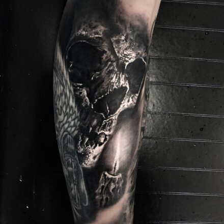 Black and grey tetování vynikne na jakékoliv části těla. Často se jedná o tetování na předloktí, záda, hrudník nebo tetování na nohy, kde může být plně využit potenciál detailního stínování a realistických obrazů.