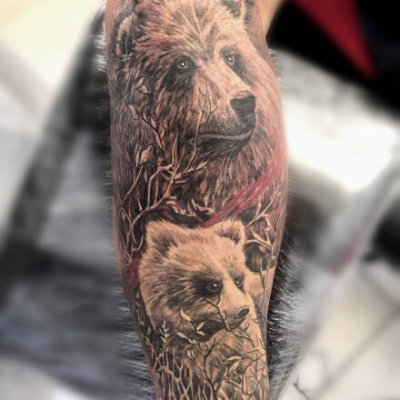Black and grey tetování vynikne na jakékoliv části těla. Často se jedná o tetování na předloktí, záda, hrudník nebo tetování na nohy, kde může být plně využit potenciál detailního stínování a realistických obrazů.