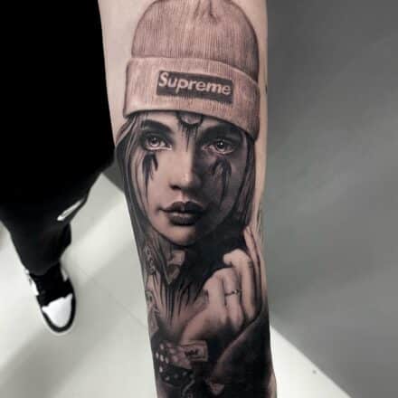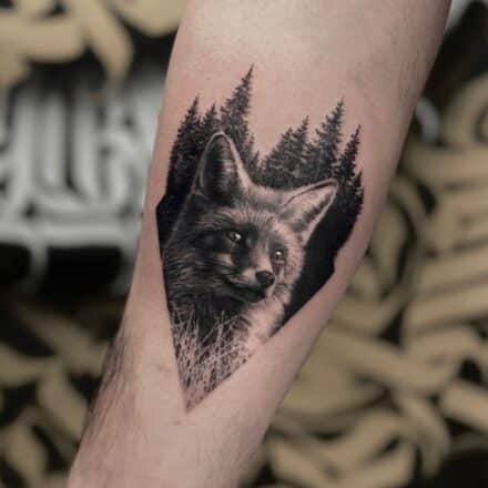 Black and grey tetování vynikne na jakékoliv části těla. Často se jedná o tetování na předloktí, záda, hrudník nebo tetování na nohy, kde může být plně využit potenciál detailního stínování a realistických obrazů.