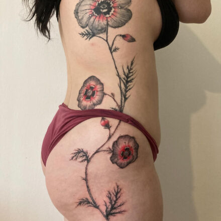 Black and grey tetování vynikne na jakékoliv části těla. Často se jedná o tetování na předloktí, záda, hrudník nebo tetování na nohy, kde může být plně využit potenciál detailního stínování a realistických obrazů.