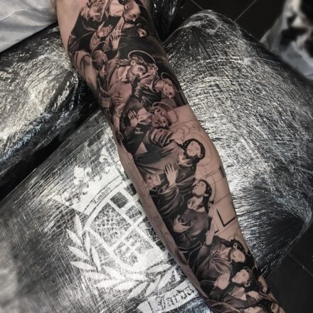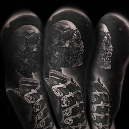 Black and grey tetování vynikne na jakékoliv části těla. Často se jedná o tetování na předloktí, záda, hrudník nebo tetování na nohy, kde může být plně využit potenciál detailního stínování a realistických obrazů.