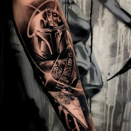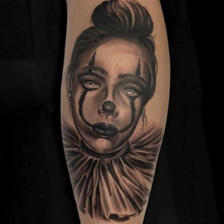 Black and grey tetování vynikne na jakékoliv části těla. Často se jedná o tetování na předloktí, záda, hrudník nebo tetování na nohy, kde může být plně využit potenciál detailního stínování a realistických obrazů.