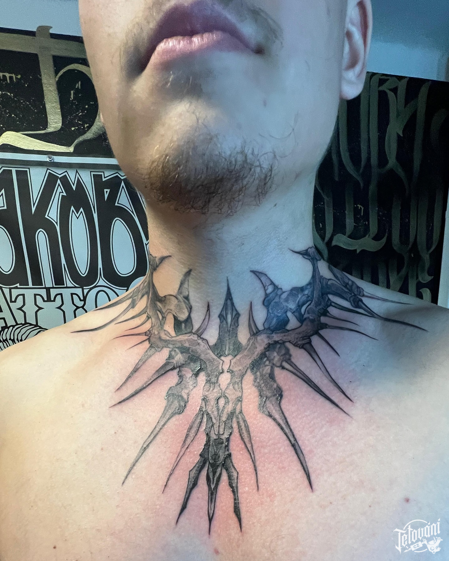 Blackwork tetování je styl, který využívá sílu a eleganci černé barvy k vytvoření výrazných motivů, které hned na první pohled zaujmou. Na naší stránce najdete bohatou galerii fotografií, které slouží jako inspirace pro Blackwork tetování. Ať už hledáte jednoduché černé tetování nebo větší a složitější motivy, naši tatéři vám pomohou najít ten pravý design. Připojte se k lidem s blackwork tetování a objevte krásu a sílu černého tetování, které vám umožní vyjádřit vaši osobnost silným a nezapomenutelným způsobem.