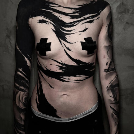 Blackwork tetování je styl, který využívá sílu a eleganci černé barvy k vytvoření výrazných motivů, které hned na první pohled zaujmou. Na naší stránce najdete bohatou galerii fotografií, které slouží jako inspirace pro Blackwork tetování. Ať už hledáte jednoduché černé tetování nebo větší a složitější motivy, naši tatéři vám pomohou najít ten pravý design. Připojte se k lidem s blackwork tetování a objevte krásu a sílu černého tetování, které vám umožní vyjádřit vaši osobnost silným a nezapomenutelným způsobem.