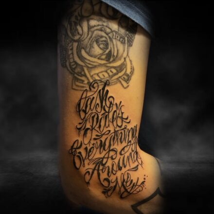 Lettering tetování je jedinečnou formou umění, ve které se kombinuje krása písma s osobním významem. Jedná se o ideální způsob, jak vyjádřit své myšlenky, pocity a důležité momenty pomocí psané formy. Tento styl tetování umožňuje nositeli přenést na kůži citáty, jména, data či třeba motta.