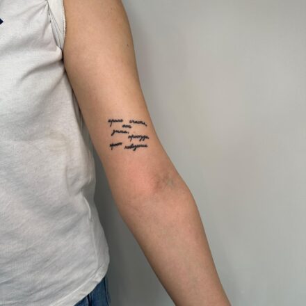 Naše galerie lettering tetování nabízí širokou škálu inspirace, která vám pomůže najít ten pravý styl a design pro vaše nové tetování. Prohlédněte si různé možnosti a objevte, jak písmo na vaší kůži dokáže vyprávět příběh. Navštivte naši galerii tetování a nechte se inspirovat uměním písma, které promění vaše slova v trvalou památku na kůži.