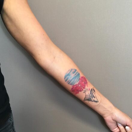 Linework je často kombinován s dalšími technikami, jako jsou dotwork tetování nebo akvarelové styly. Tyto kombinace přináší jedinečná a poutavá díla, kde se perspektiva, stínování a barvy snoubí s čistými liniemi.