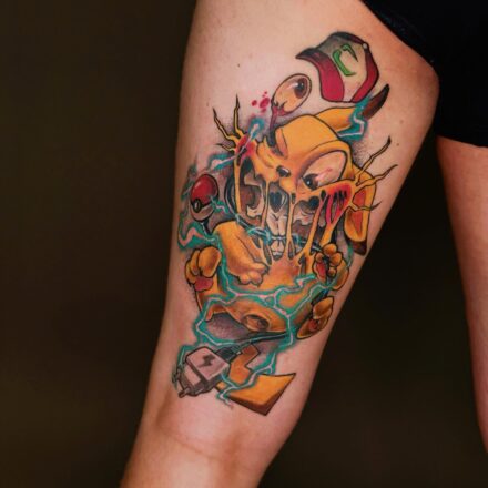 New school tetování je známé svým odvážným a výrazným stylem, který kombinuje živé barvy, silné kontury a často karikaturní motivy. Tento moderní styl přináší svěží pohled na klasické tetování a posouvá hranice kreativity. New school tetování je moderní styl, který vzešel z 80. a 90. let minulého století a okamžitě zaujal svým výrazným vzhledem. Přináší svěží vítr do světa tetování, inspirovaný pop kulturou, komiksy a graffiti uměním. Motivy zahrnují postavy z komiksů, kreslených filmů a videoher, čímž tetování získává moderní a zábavný nádech. Tatéři také často využívá stínování a vytváří tak iluzi trojrozměrnosti a živosti. Hravost a kreativita jsou základními prvky tohoto stylu. Umělcům tak mají možnost volně experimentovat s různými formami a tématy.