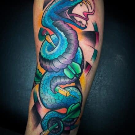 New school tetování je známé svým odvážným a výrazným stylem, který kombinuje živé barvy, silné kontury a často karikaturní motivy. Tento moderní styl přináší svěží pohled na klasické tetování a posouvá hranice kreativity. New school tetování je moderní styl, který vzešel z 80. a 90. let minulého století a okamžitě zaujal svým výrazným vzhledem. Přináší svěží vítr do světa tetování, inspirovaný pop kulturou, komiksy a graffiti uměním. Motivy zahrnují postavy z komiksů, kreslených filmů a videoher, čímž tetování získává moderní a zábavný nádech. Tatéři také často využívá stínování a vytváří tak iluzi trojrozměrnosti a živosti. Hravost a kreativita jsou základními prvky tohoto stylu. Umělcům tak mají možnost volně experimentovat s různými formami a tématy.
