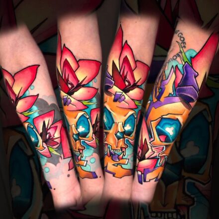 New school tetování je známé svým odvážným a výrazným stylem, který kombinuje živé barvy, silné kontury a často karikaturní motivy. Tento moderní styl přináší svěží pohled na klasické tetování a posouvá hranice kreativity. New school tetování je moderní styl, který vzešel z 80. a 90. let minulého století a okamžitě zaujal svým výrazným vzhledem. Přináší svěží vítr do světa tetování, inspirovaný pop kulturou, komiksy a graffiti uměním. Motivy zahrnují postavy z komiksů, kreslených filmů a videoher, čímž tetování získává moderní a zábavný nádech. Tatéři také často využívá stínování a vytváří tak iluzi trojrozměrnosti a živosti. Hravost a kreativita jsou základními prvky tohoto stylu. Umělcům tak mají možnost volně experimentovat s různými formami a tématy.